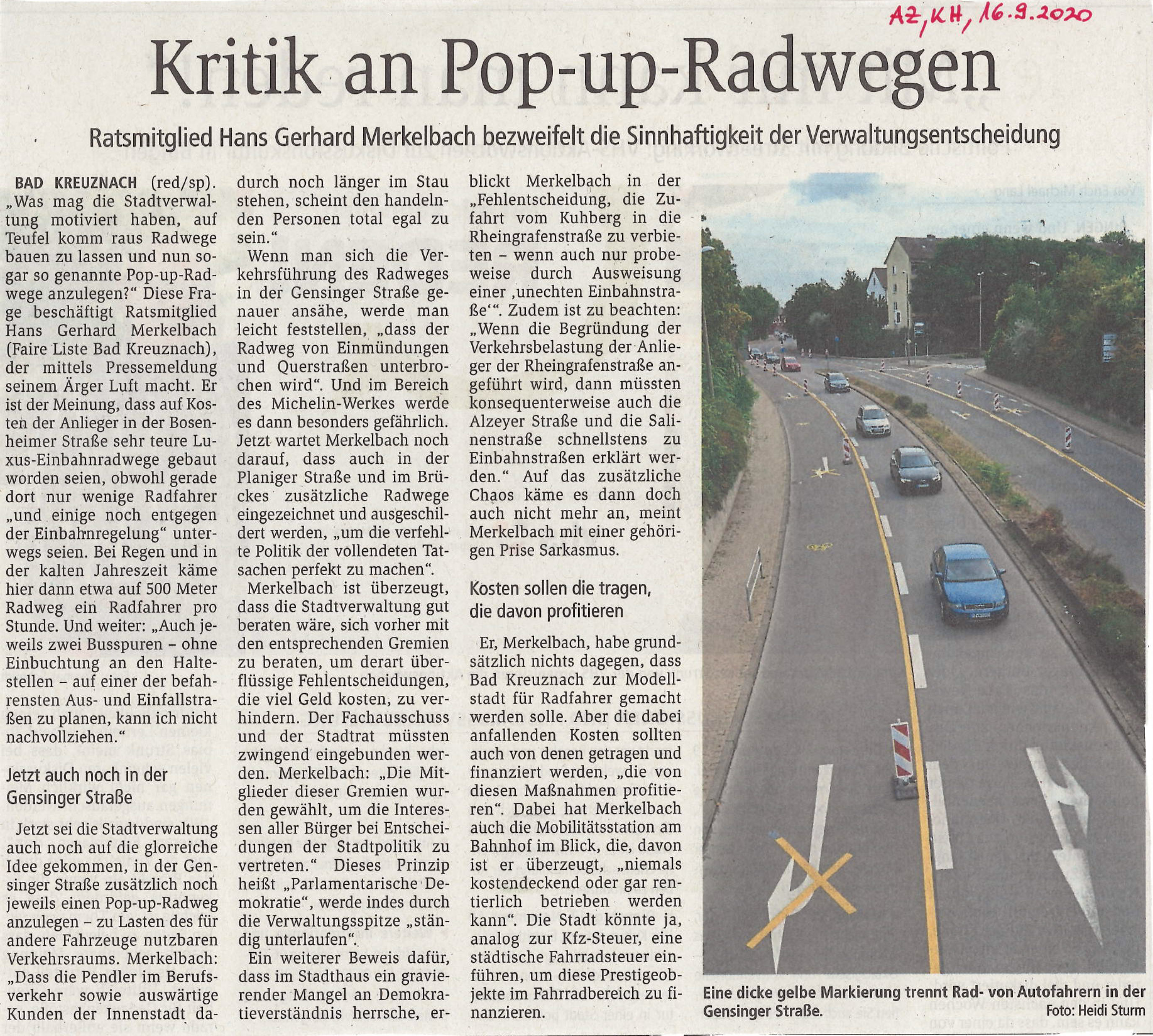 Hier ein Ausriß der Allgemeinen Zeitung Bad Kreuznach vom 16.09.2020